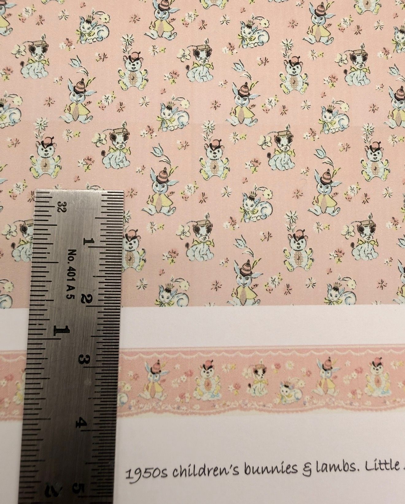 Wallpaper /fabric 1950s Childrens bunnies & lambs. 1/48