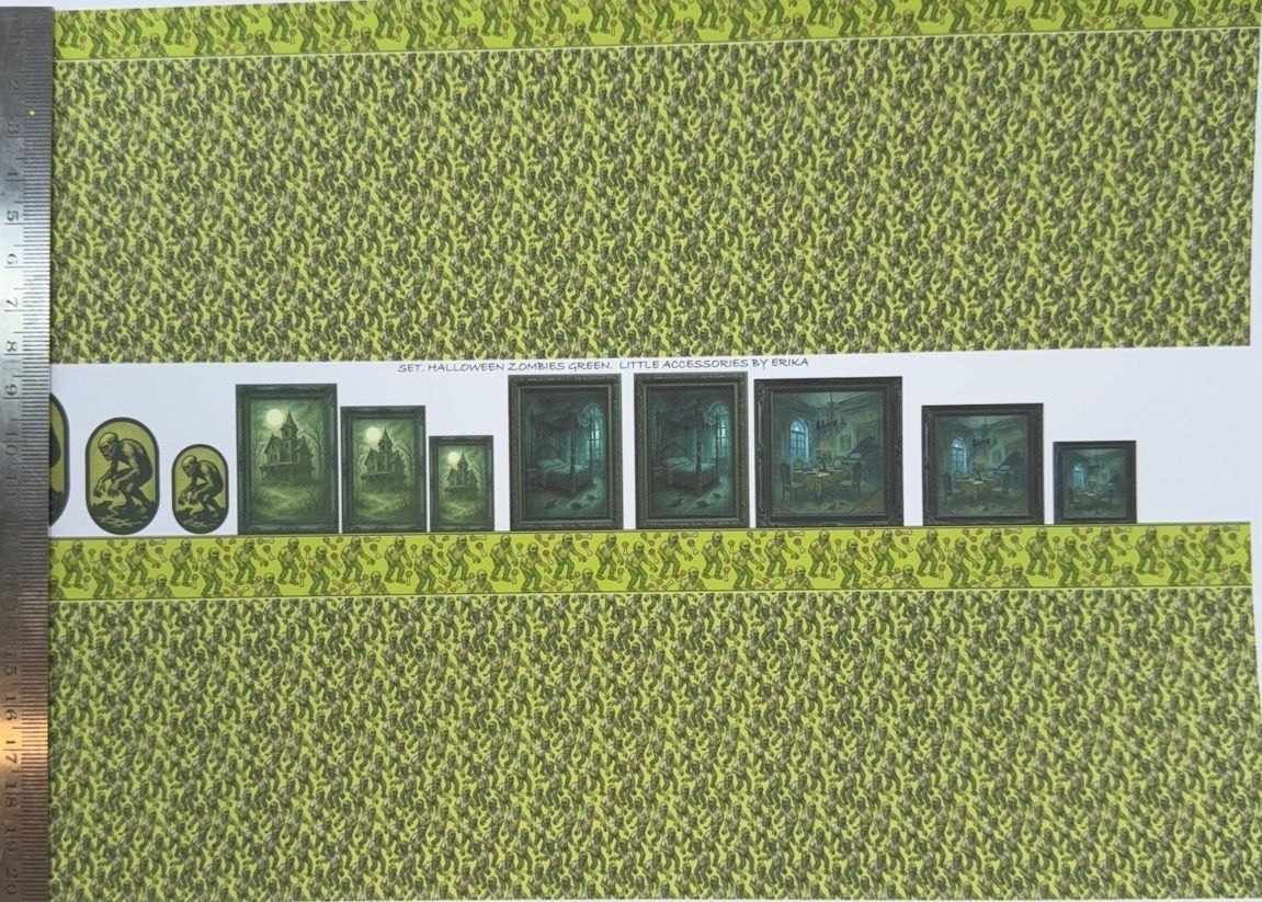 Wallpaper/fabric,carpet. SET Halloween zombies green 1/48 scale