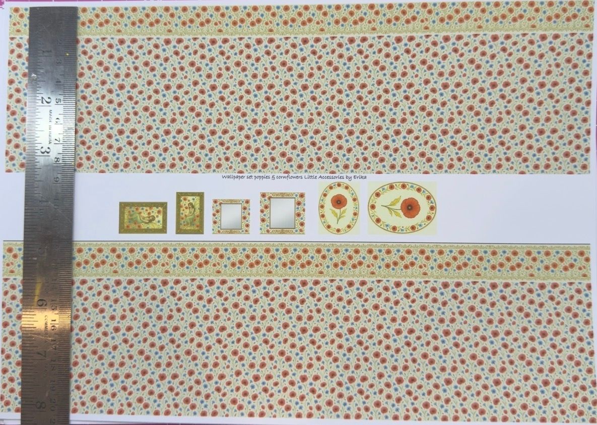 Wallpaper/fabric/carpet. SET poppies & cornflowers. 1/48 scale