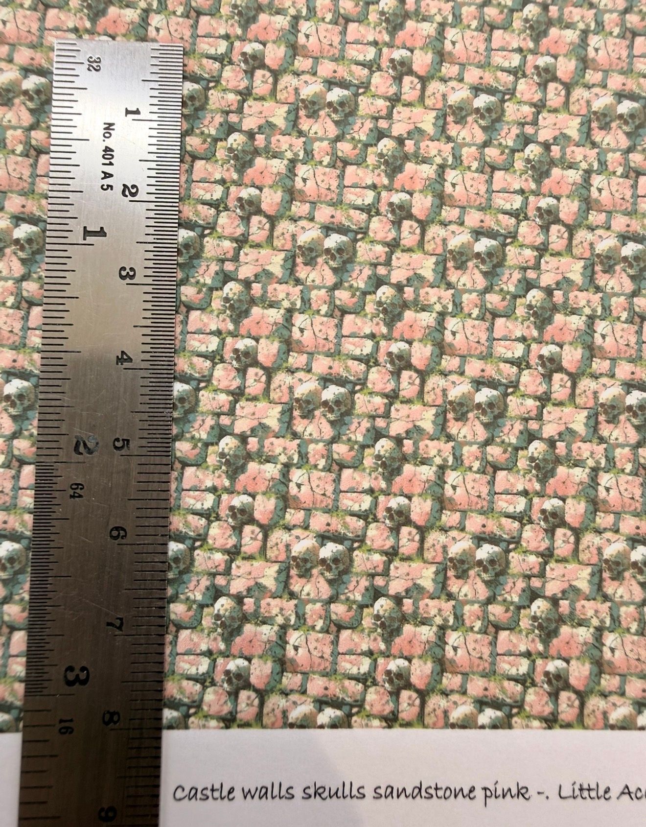 Wallpaper/fabric. Castle walls skulls sandstone pink. 1/48 scale