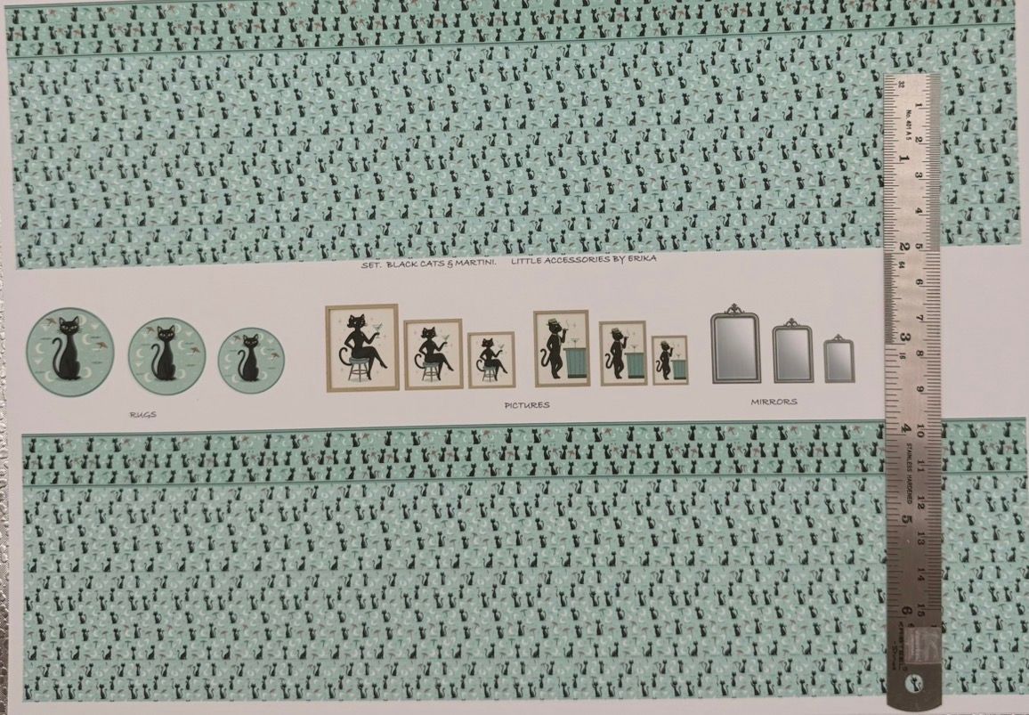 Wallpaper /fabric CAT - black martini - matching set 1/48 scale