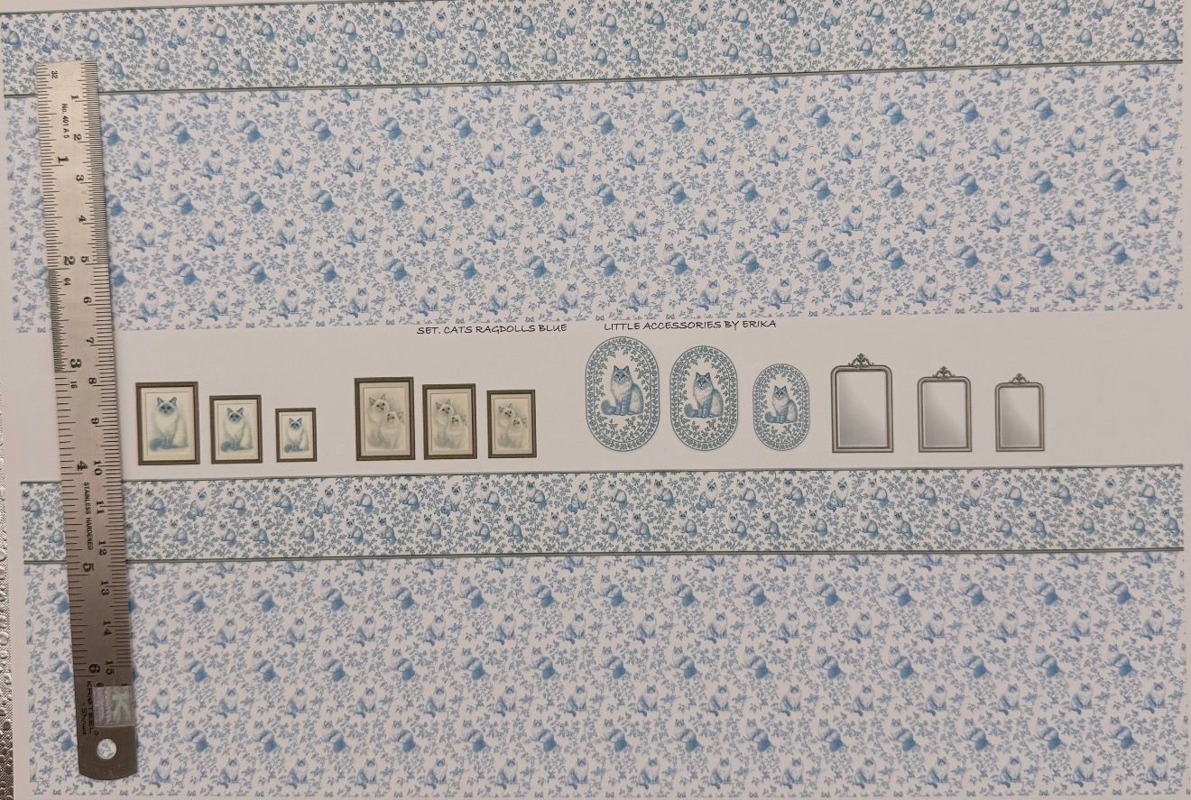 Wallpaper/fabric CAT set ragdoll blue 1/48 scale