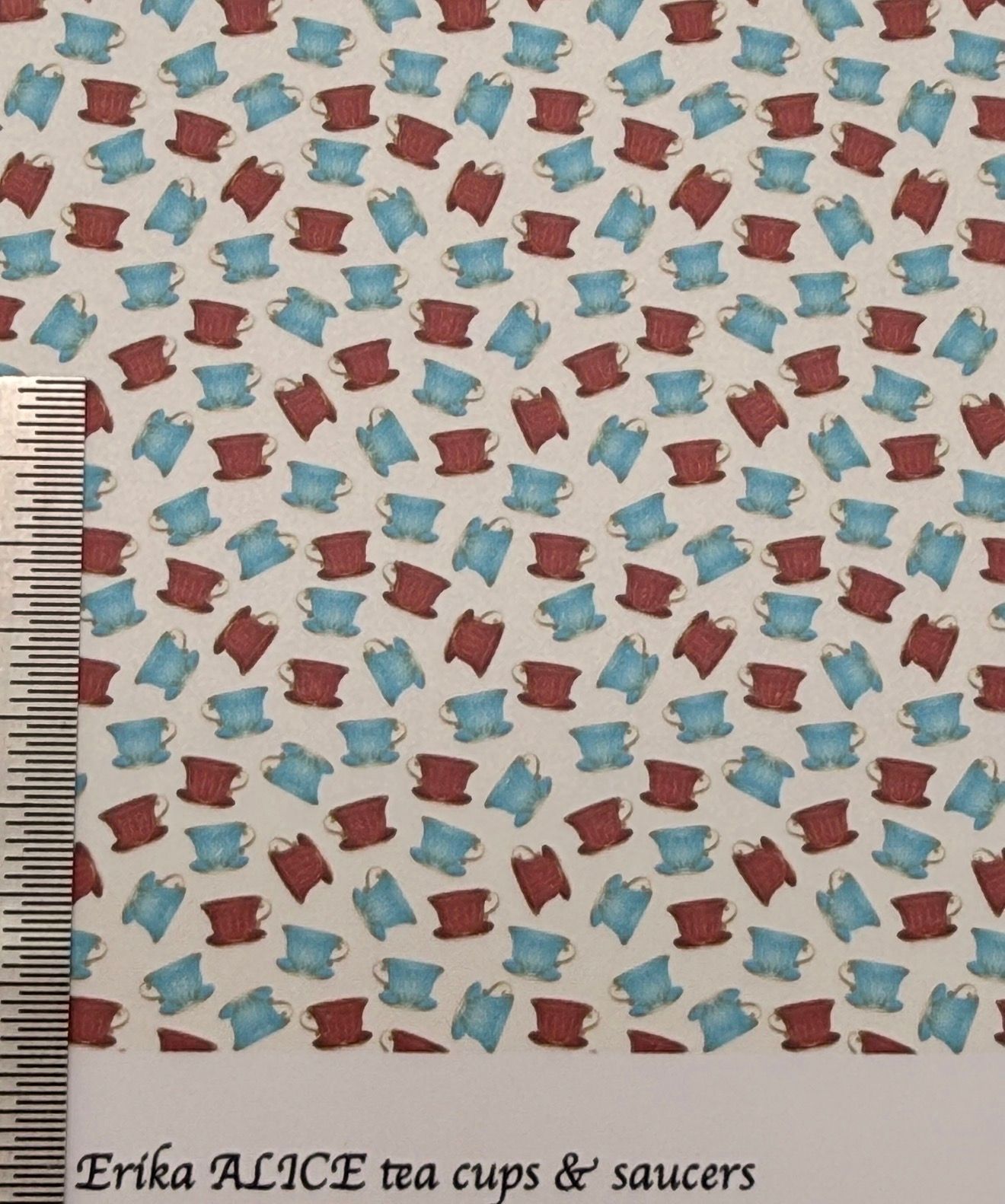 Wallpaper/fabric children Alice teacups & saucers 1/48 scale