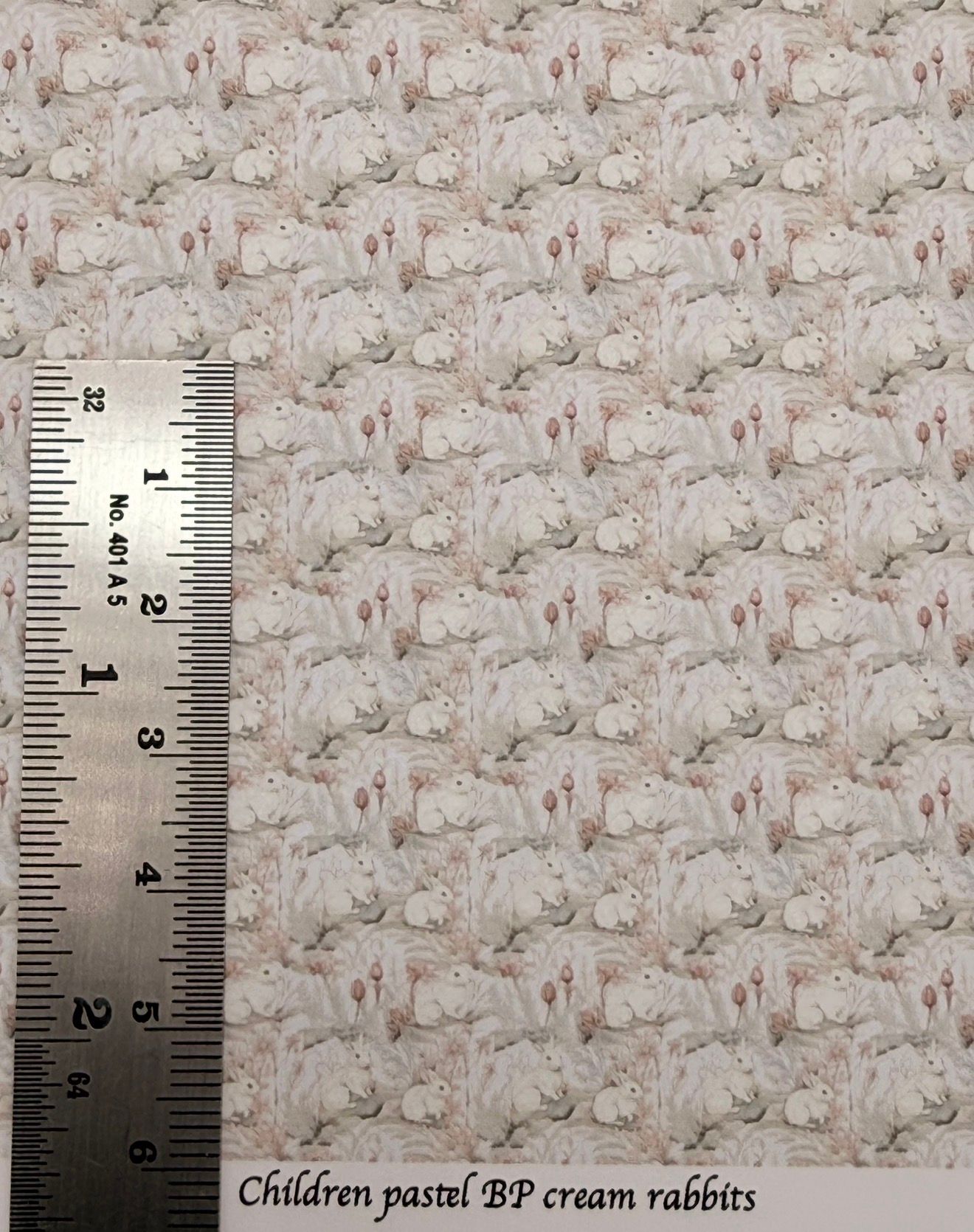 Wallpaper/fabric Children. Pastels BP cream rabbits 1/48 scale