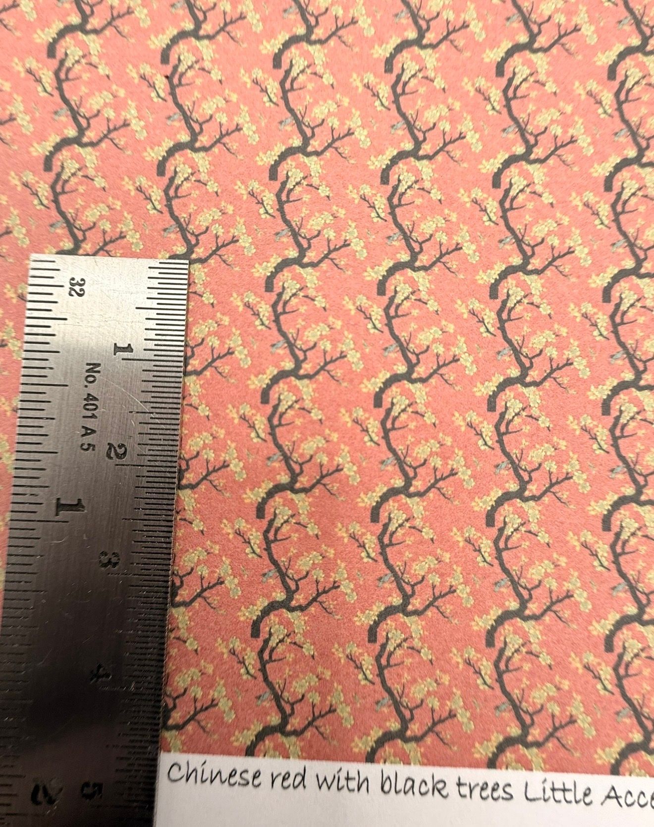 Wallpaper/fabric. Chinese red with black trees 1/48 scale