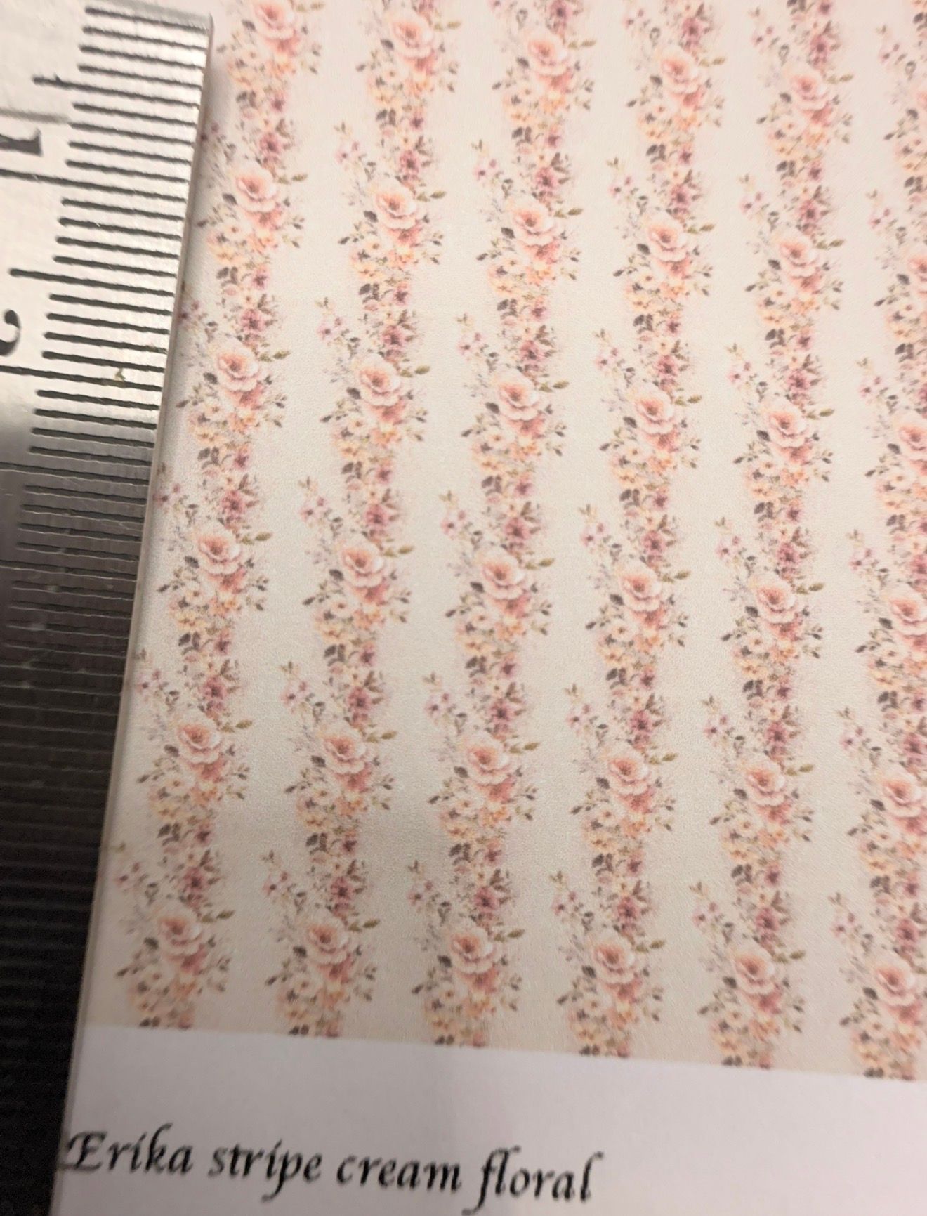 Wallpaper/fabric. Cream stripw floral. 1/48 scale .