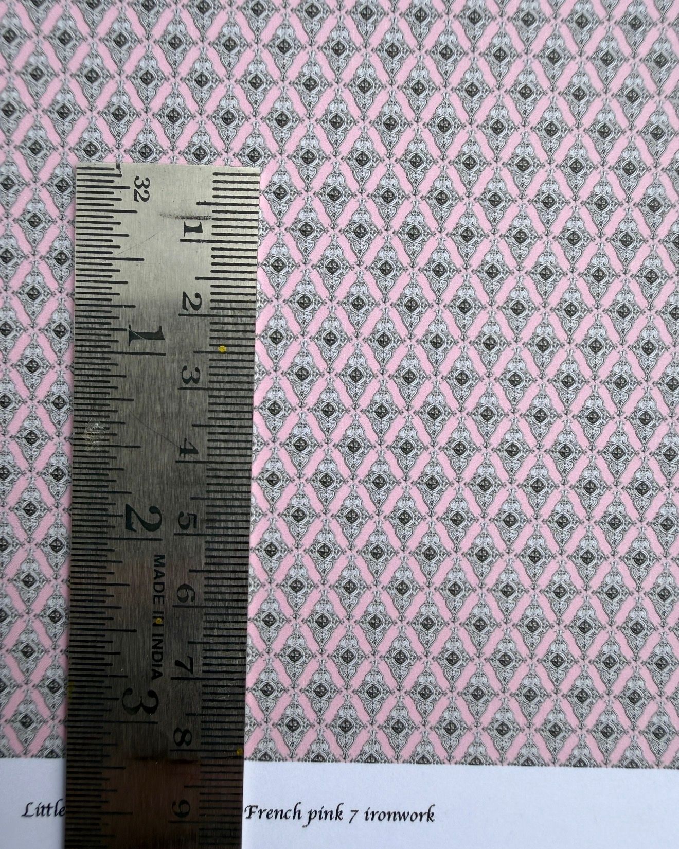 wallpaper/ fabric. french pink 7 ironwork. 1/48 scale