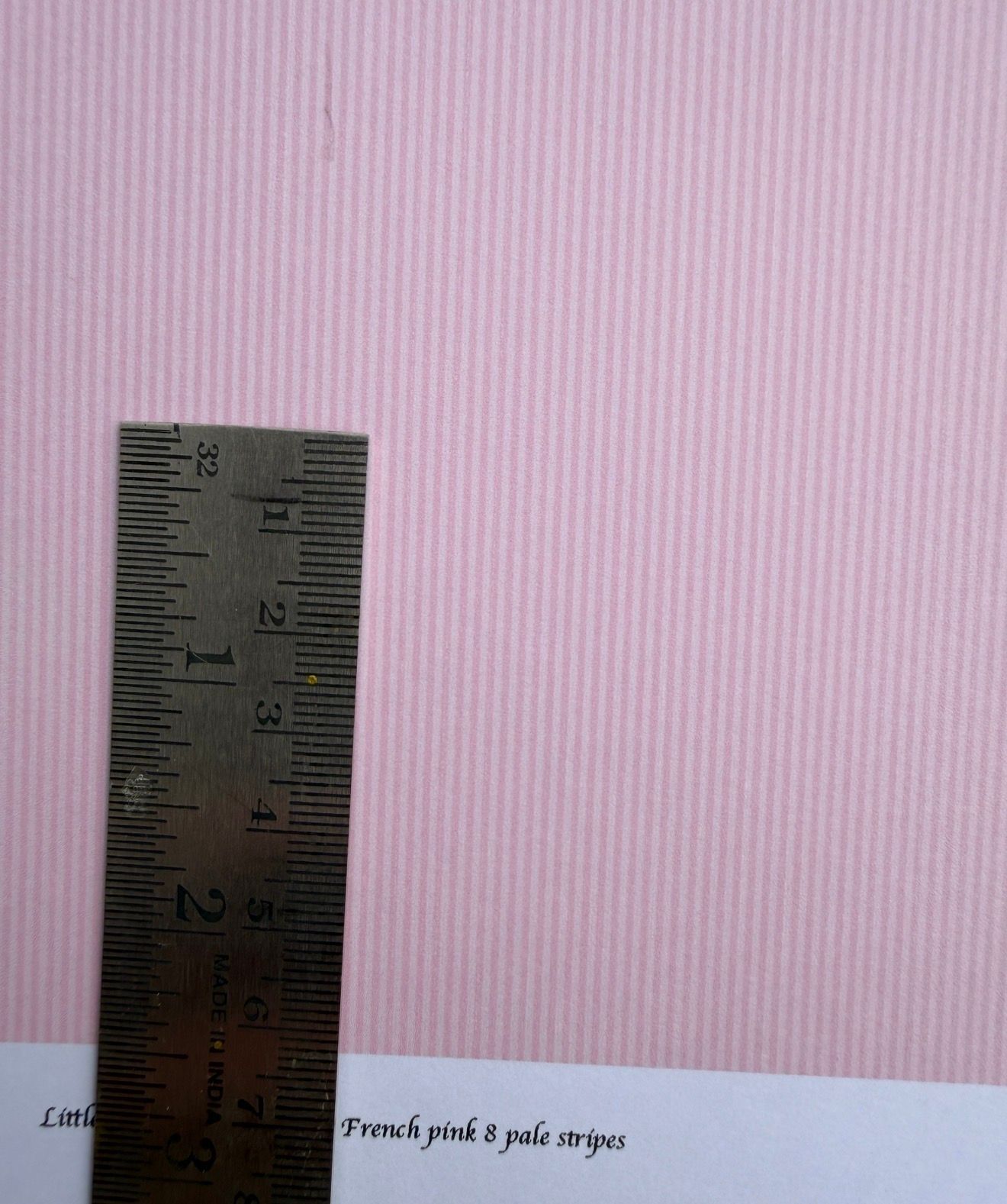 Wallpaper/fabric. french pink 8 pale stripes. 1/48 scale