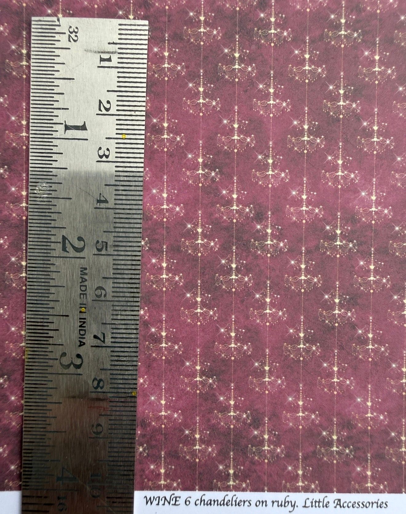 wallpaper/fabric. French wine 6 chandeliers on ruby 1/48 scale