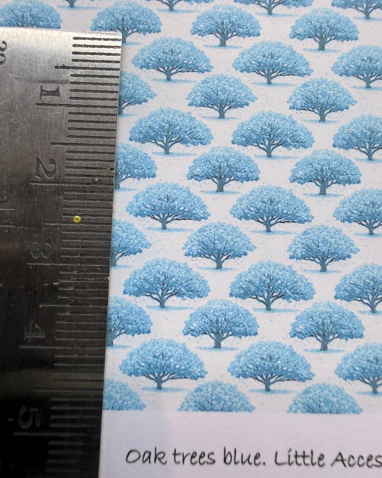 Wallpaper/fabric. Oak trees blue. 1/48 scale