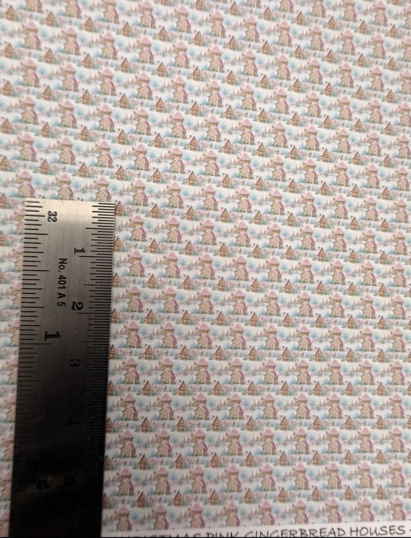 Wallpaper/fabric. Pink gingerbread houses 1/48 scale