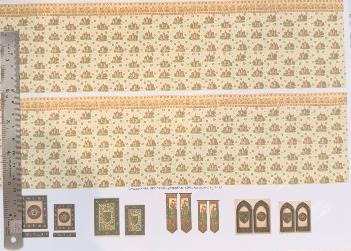 Wallpaper/fabric. SET Castles 5 with tapestries.