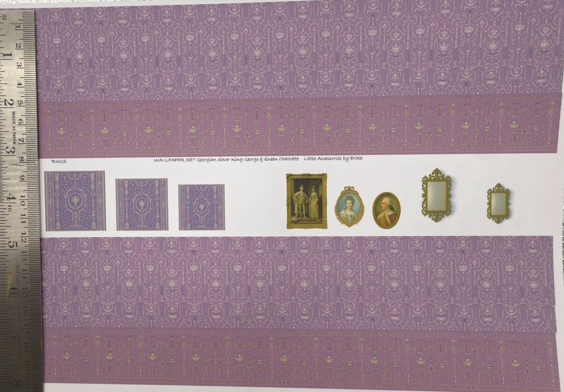 Wallpaper/fabric SET Georgian clover King george & queen Charlotte 1/48 scale