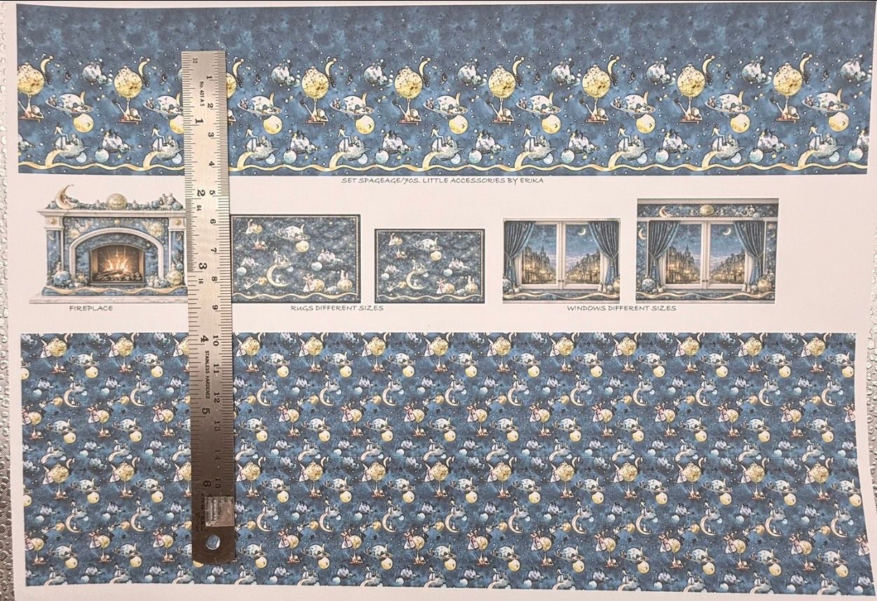 Wallpaper/fabric. Children Set. Space age /70s. - 1/48 scale