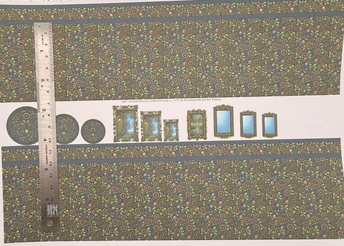 Wallpaper/fabric. SET steampunk Christmas1. - 1/48 scale
