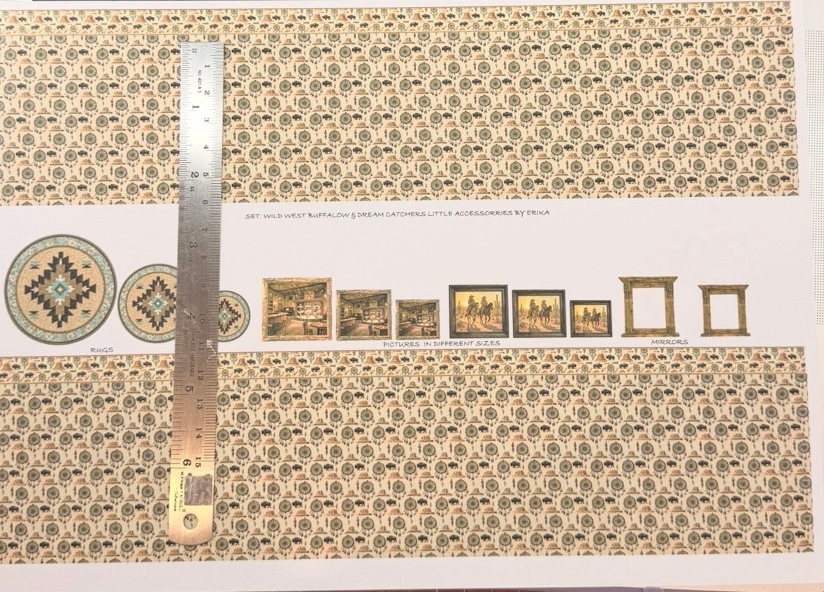 wallpaper/fabric. SET Wild west Buffalo & dream catchers 1/48 scale