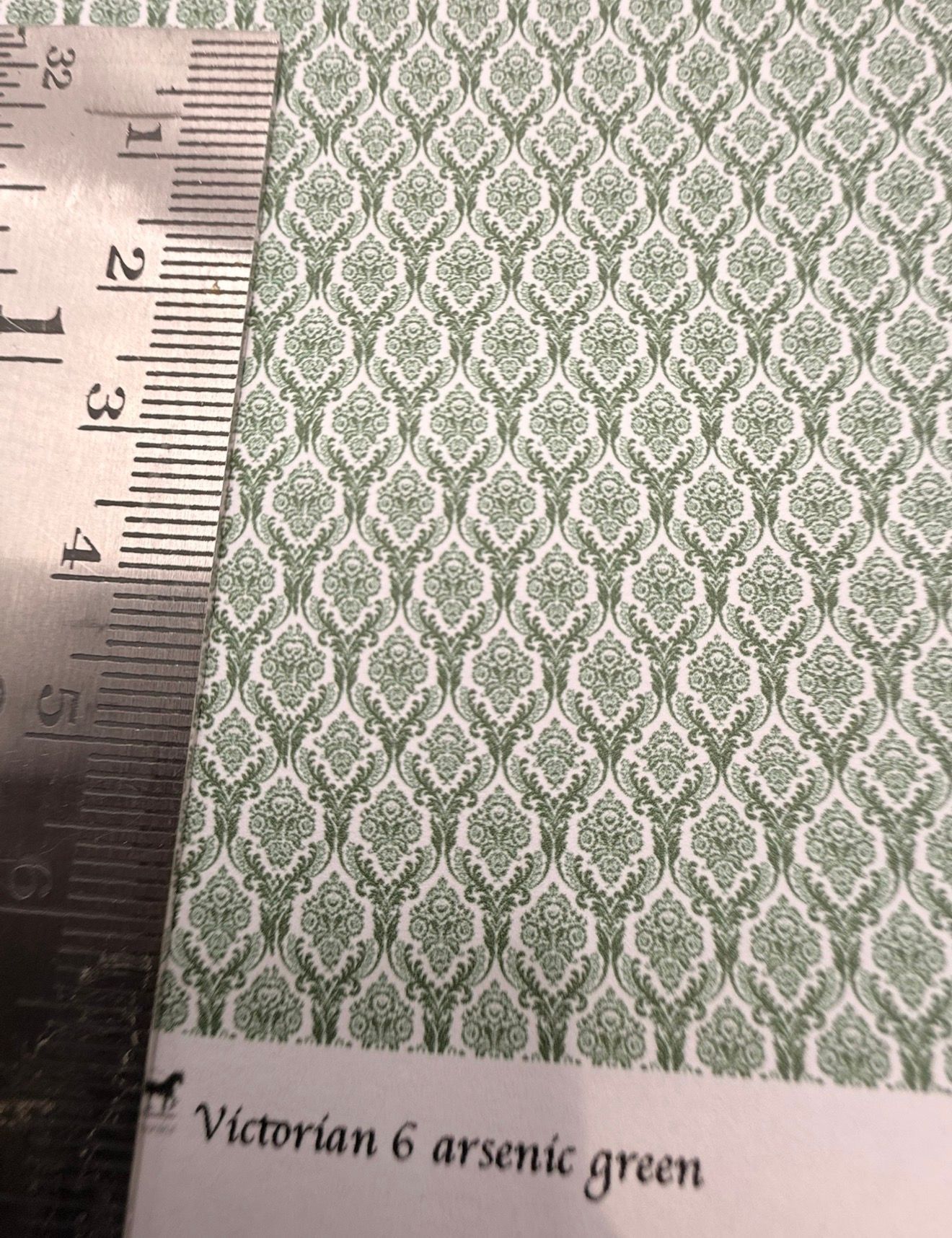 Wallpaper/fabric. Victorian 6 Arsenic green. 1/48 scale
