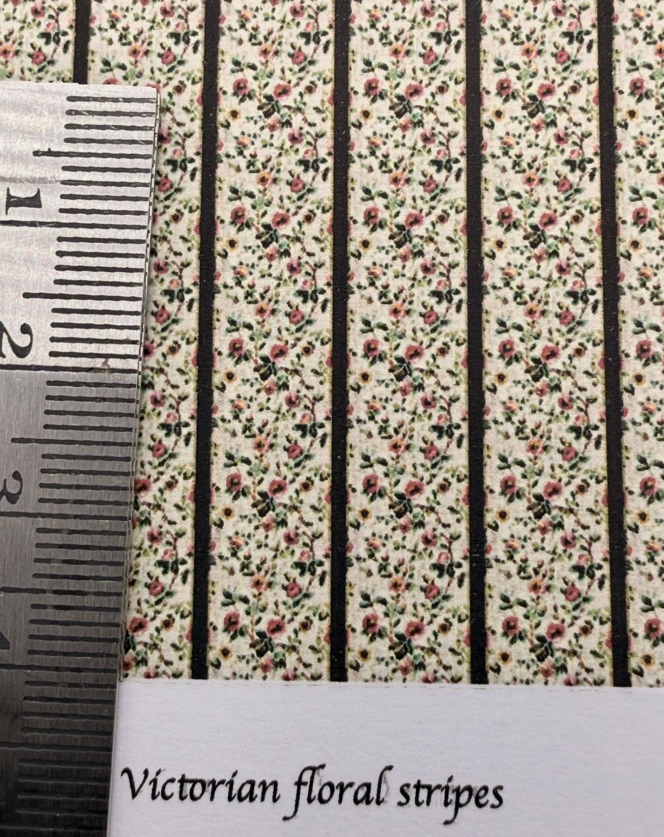 Wallpaper/fabric. Victorian floral stripes. 1/48 scale