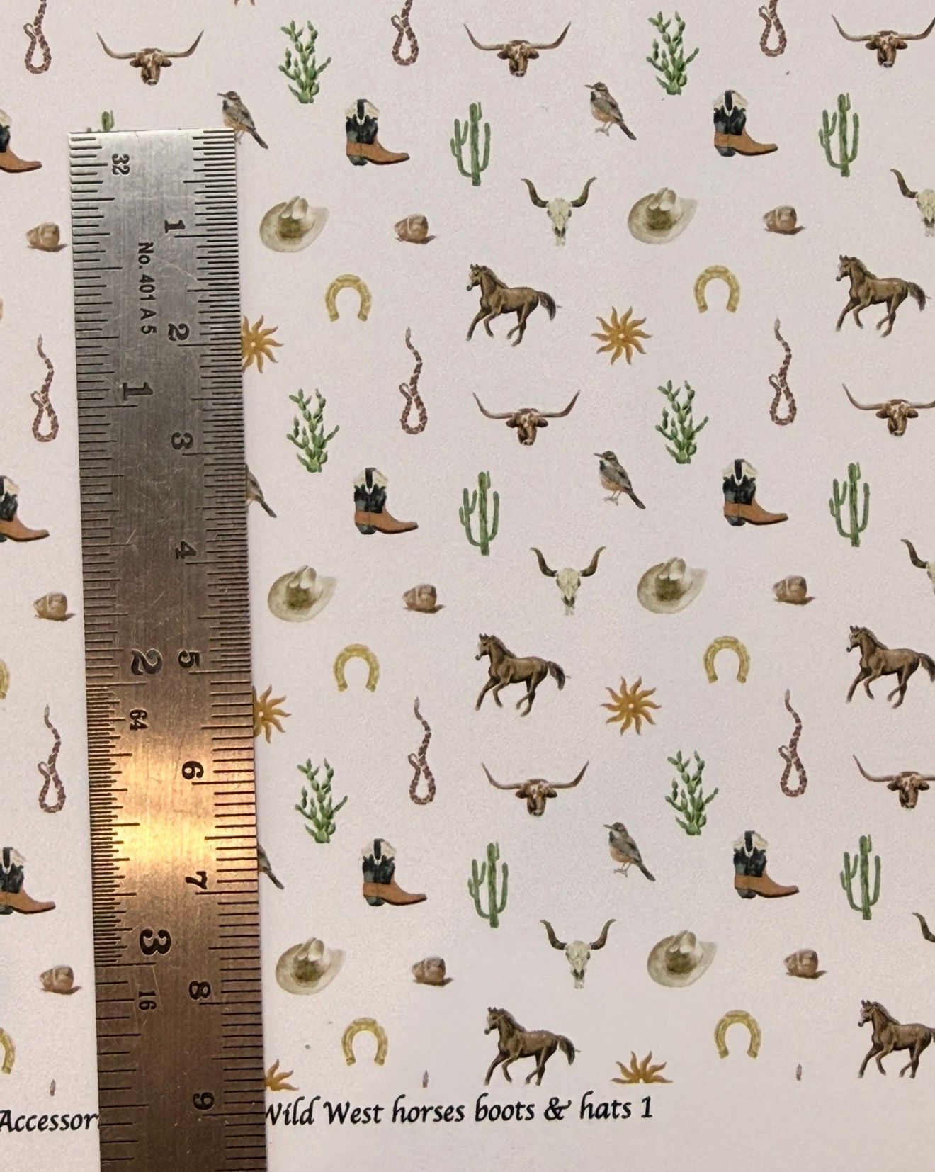 Wallpaper/fabric, Wild west horses, boots & hats 1. - 1/48 scale