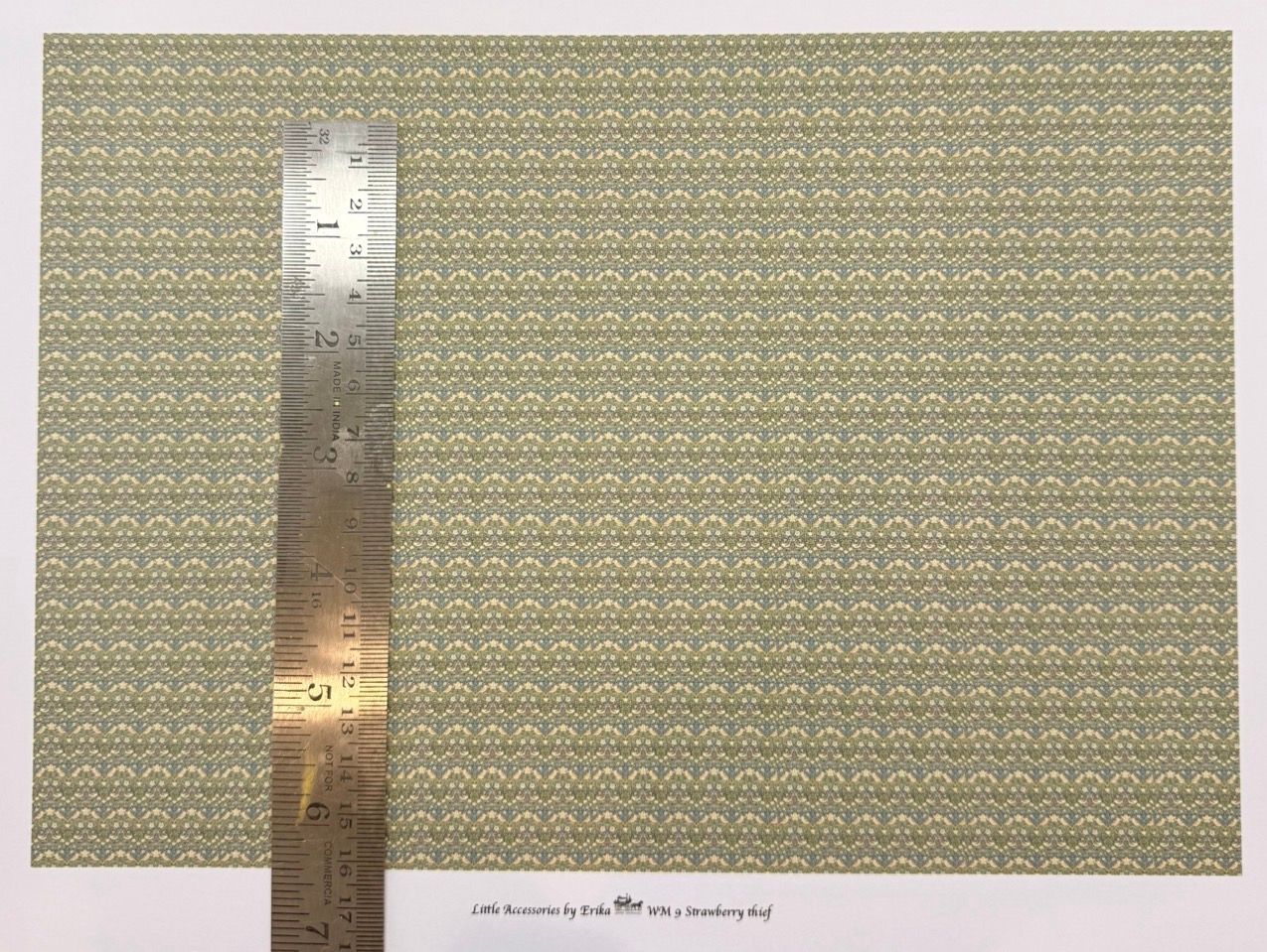 Wallpaper/fabric. William Morris 9 Strawberry thief. 1/48 scale