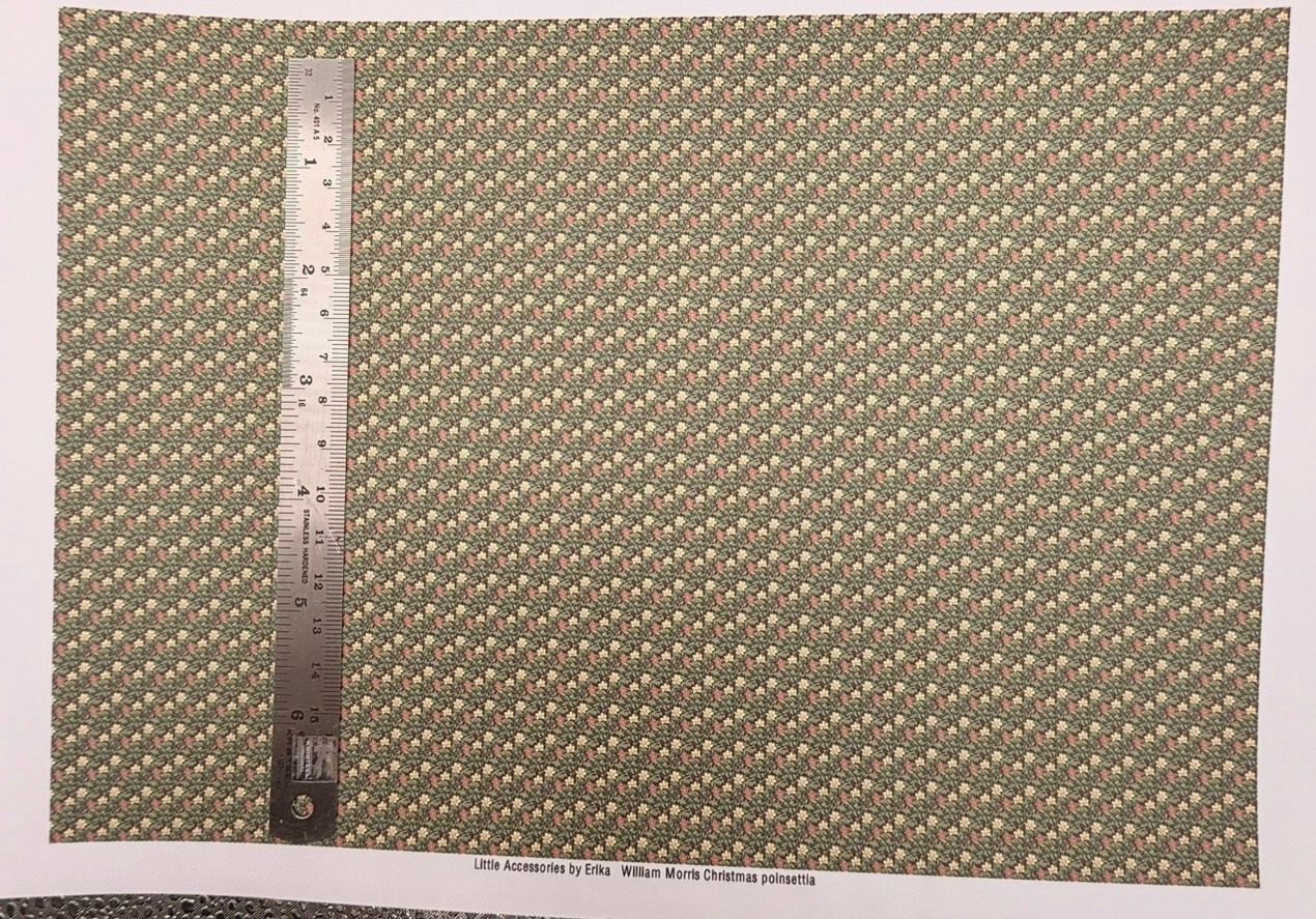 Wallpaper/fabric. William Morris Christmas poinsetia. 1/48 scale