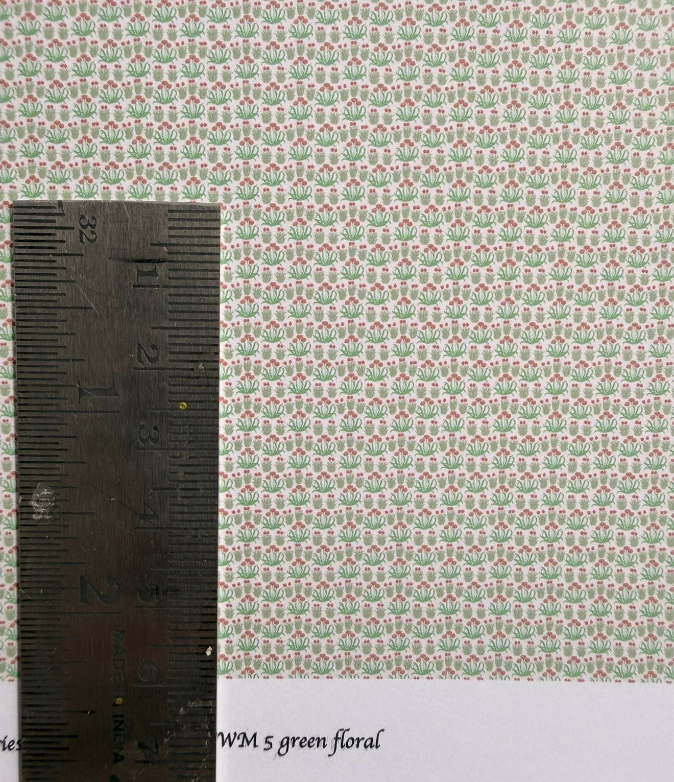 Wallpaper/fabric. WM 5 green floral. 1/48 scale
