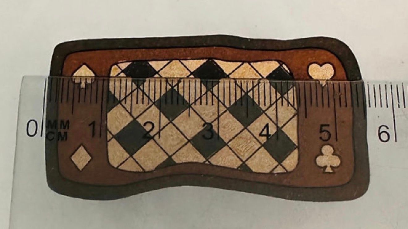 Size of 5.5cm in length by 3cm in width and 2cm in height at the widest point,