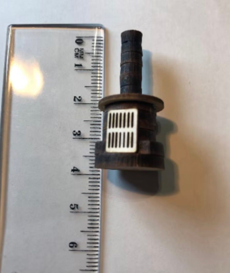 1/48th wood burning stove. Size: 1.7 cms circumference x 3.6 cms high. Flat packed in kit form and ready for construction in colours of your own choosing. A wood-burning stove (or wood burner or log burner in the UK) is a heating appliance capable of burning wood fuel and wood-derived biomass fuel, such as sawdust bricks. Generally the appliance consists of a solid metal (usually cast iron or steel) closed firebox, often lined by fire brick, and one or more air controls (which can be manually or automatically operated depending upon the stove). The first wood-burning stove was patented in Strasbourg in 1557, two centuries before the Industrial Revolution, which would make iron an inexpensive and common material, so such stoves were high end consumer items and only gradually spread in use. Designed and copyrighted by Raptoor Note: our work conforms fully to the General Product Safety Regulations as laid down by the EU.